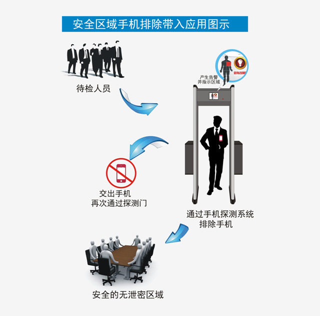 針對一些涉密的要害部門存在利用手機的通話、錄音、拍照、移動網絡等功能將重要的涉密信息外泄的現象,本方案是從根本上解決手機防帶入問題的解決方案。為了徹底解通決過手機途徑的泄密問題,我們提供了手機探測系統,專為保密部門定制的防手機帶入管理系統。